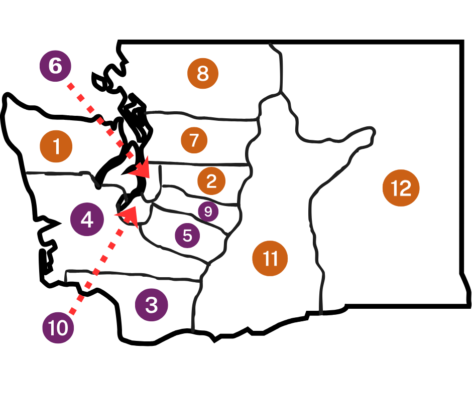 Region 6 covers a portion of King and Snohomish counties. It consists of the Northshore, Seattle, and Shoreline school districts.