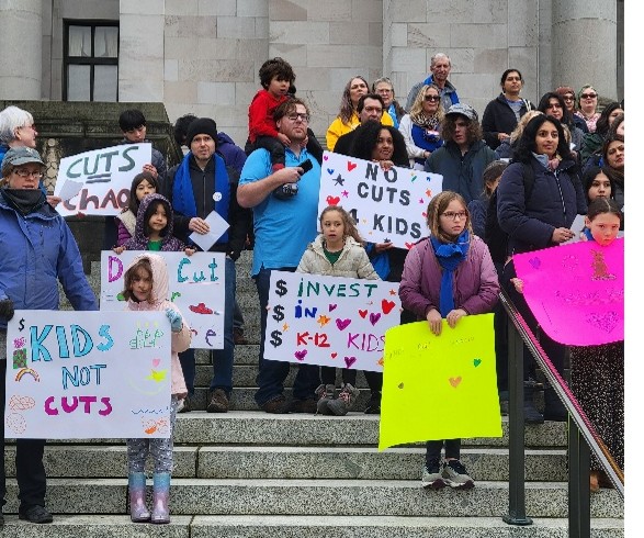 More than 150 parents and students attended Focus Day last Monday. Thank you to everyone who could come to Olympia, meet with their legislators, rally on the steps, and march around the Capitol campus urging legislators to fund K-12 education.